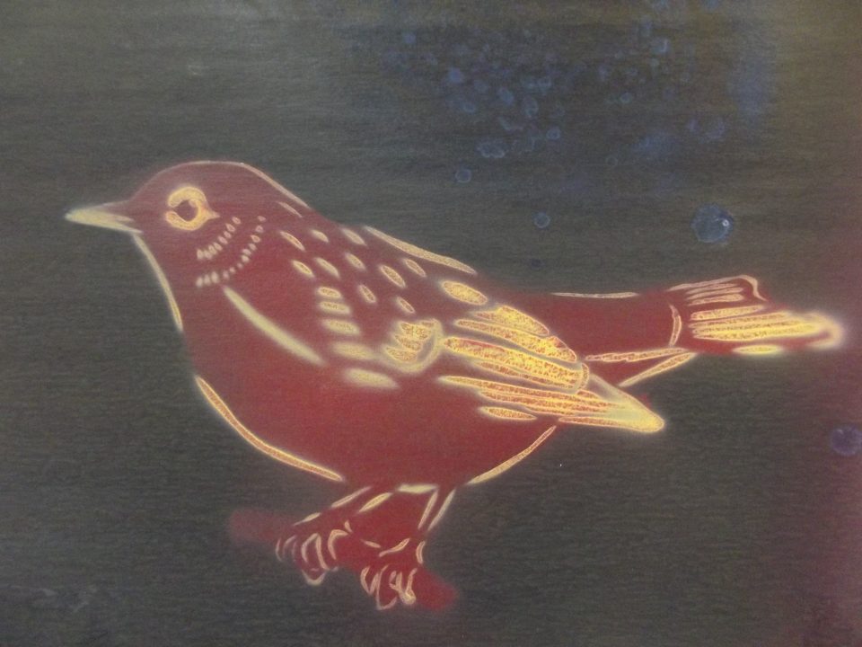 今年4月にWanganui Collegiateへ行ったばかりのSくん、美術のステンシル(版画の様なもの)の作品で先生から大絶賛されました。雀を題材にしたそうですが、部分の詳細がとても繊細!と美術の先生も褒める程!!