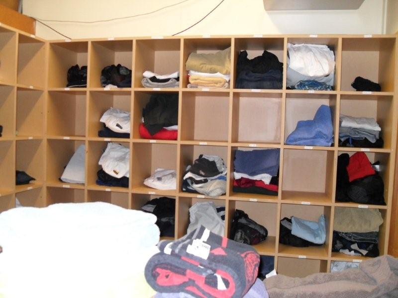 各自の棚に洗濯し終わったものがたたんで入れられています。