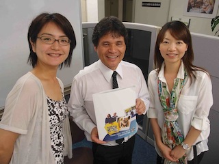 [caption id="attachment_1425" align="aligncenter" width="300" caption="ICCオフィスにて、学校パンフをアピールしながらの一枚"]