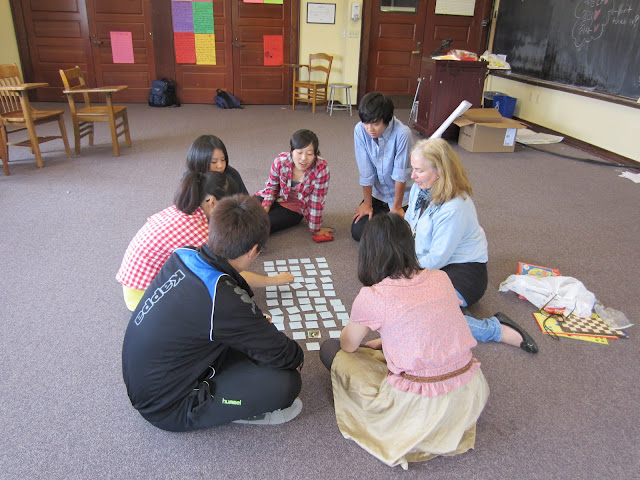 休み時間に韓国人や中国人のお友達と。バナナはおやつです。