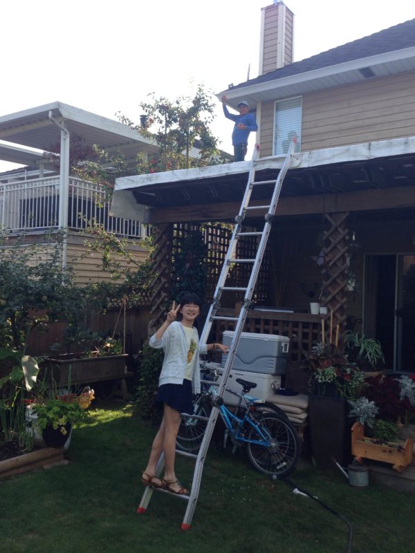 日曜日はホストファミリーと一緒に過ごすことが多い。庭先でホストファザーと。ホストファザー、どこにいるかわかりますか?