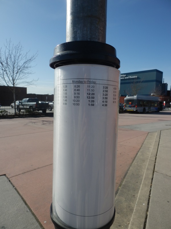 バス停の時刻表。ちょっとおしゃれに見えるのは、海外マジックです。
